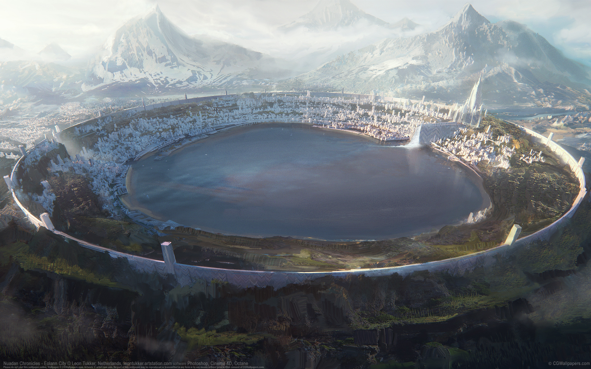 Nuadan Chronicles - Eolann City © Leon Tukker, Netherlands software Photoshop, Cinema 4D, Octane