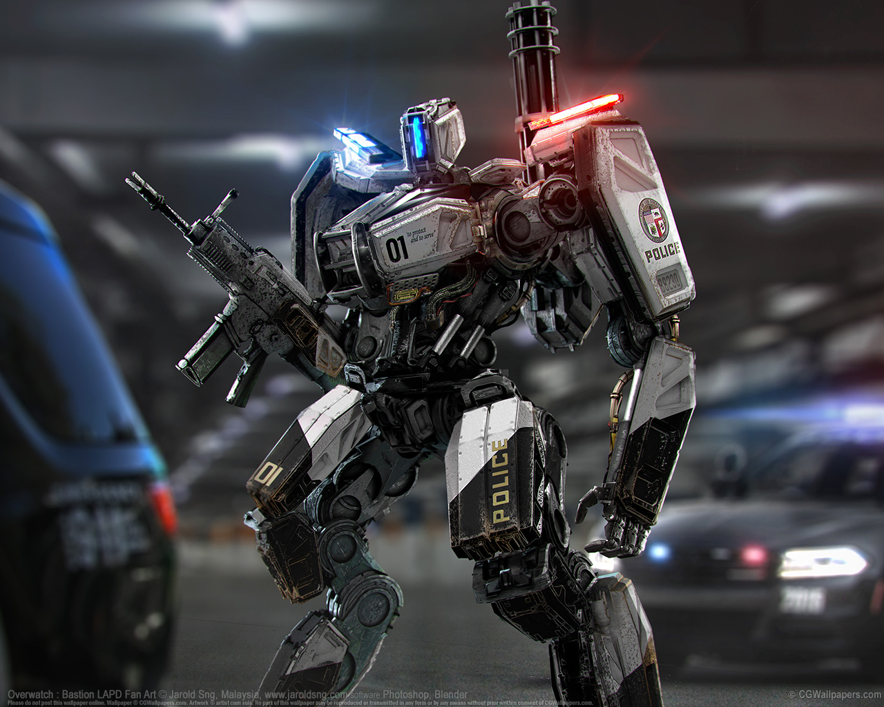 Overwatch : Bastion LAPD Fan Art © Jarold Sng, Malaysia software Photoshop, Blender